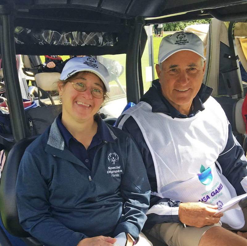 Ron Fulop has dedicated his time to his daughter, along with several other Special Olympics athletes. Lindsay Fulop is an accomplished Special Olympics athlete and Athlete Leader. Lindsay’s success led to her 2021 induction into the Special Olympics Hall of Fame. She has won gold in golf and swimming. Ron is her caddy for golf and is always there to support her in any sport.