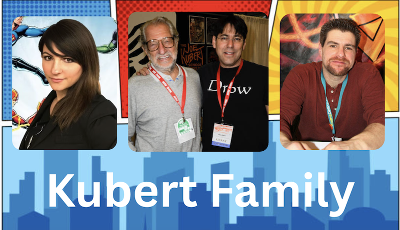 Joe Kubert was a legendary artist and founder of The Kubert School. Joe was a comic book artist, editor, and educator, best known for his work on DC Comics characters such as Sgt. Rock and Hawkman. His sons, Andy and Adam Kubert, are both superstar artists who have worked on flagship titles like Batman and X-Men. Katie Kubert, who is Joe’s granddaughter, is an editor at DC Comics.